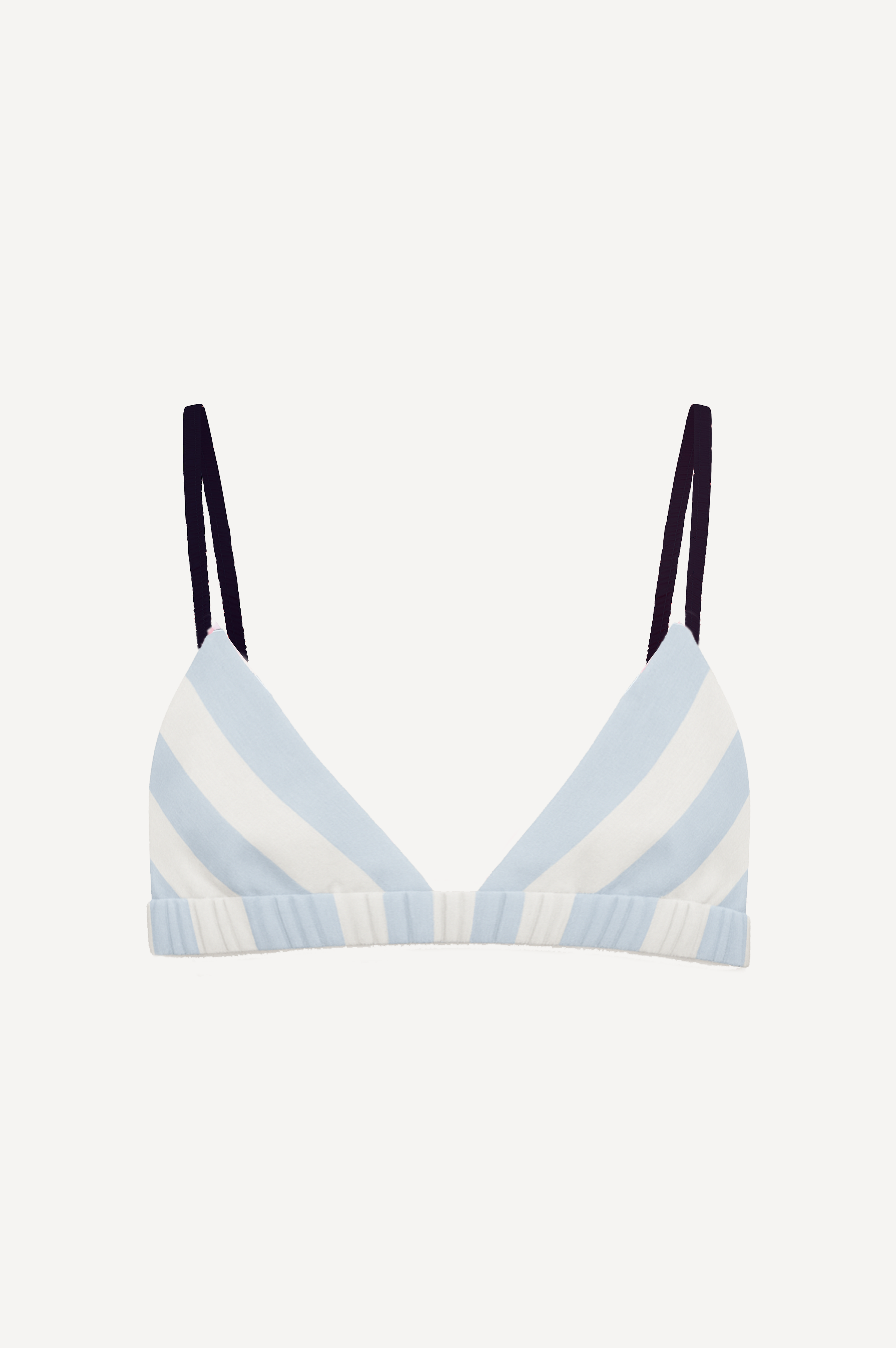 The BRALETTE is made to match your favorite shirt or dress with a ribcage band that moves as you do. Over the shoulder straps add the perfect amount of delicate support. The bralette is constructed with a soft unstructured triangle cup, stretchy shoulder & rib casing and is hardware free.