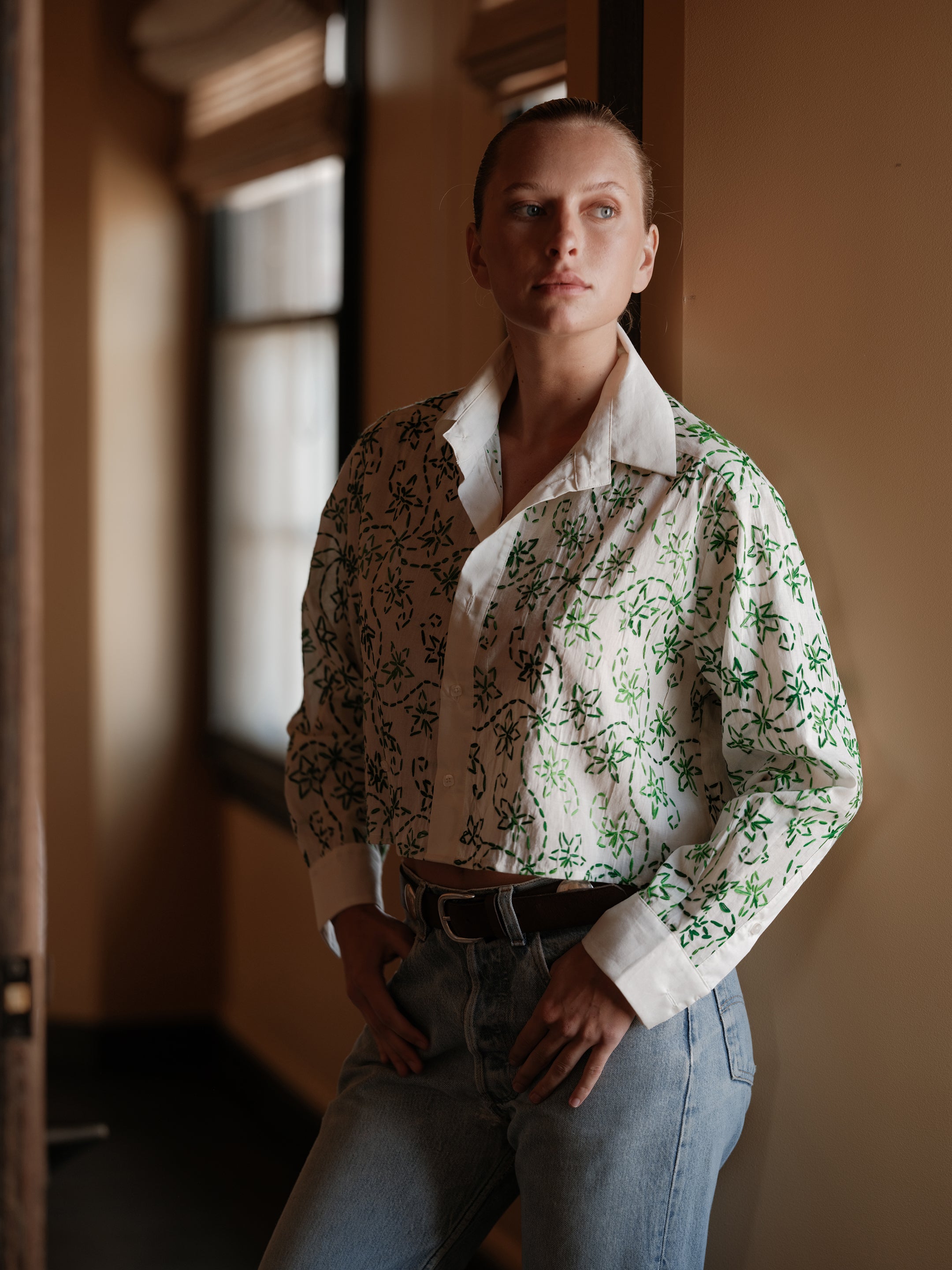 An extra short and a more edgy version of our MEN'S Shirt. Constructed in 100% un-dyed, hand stitched cotton.