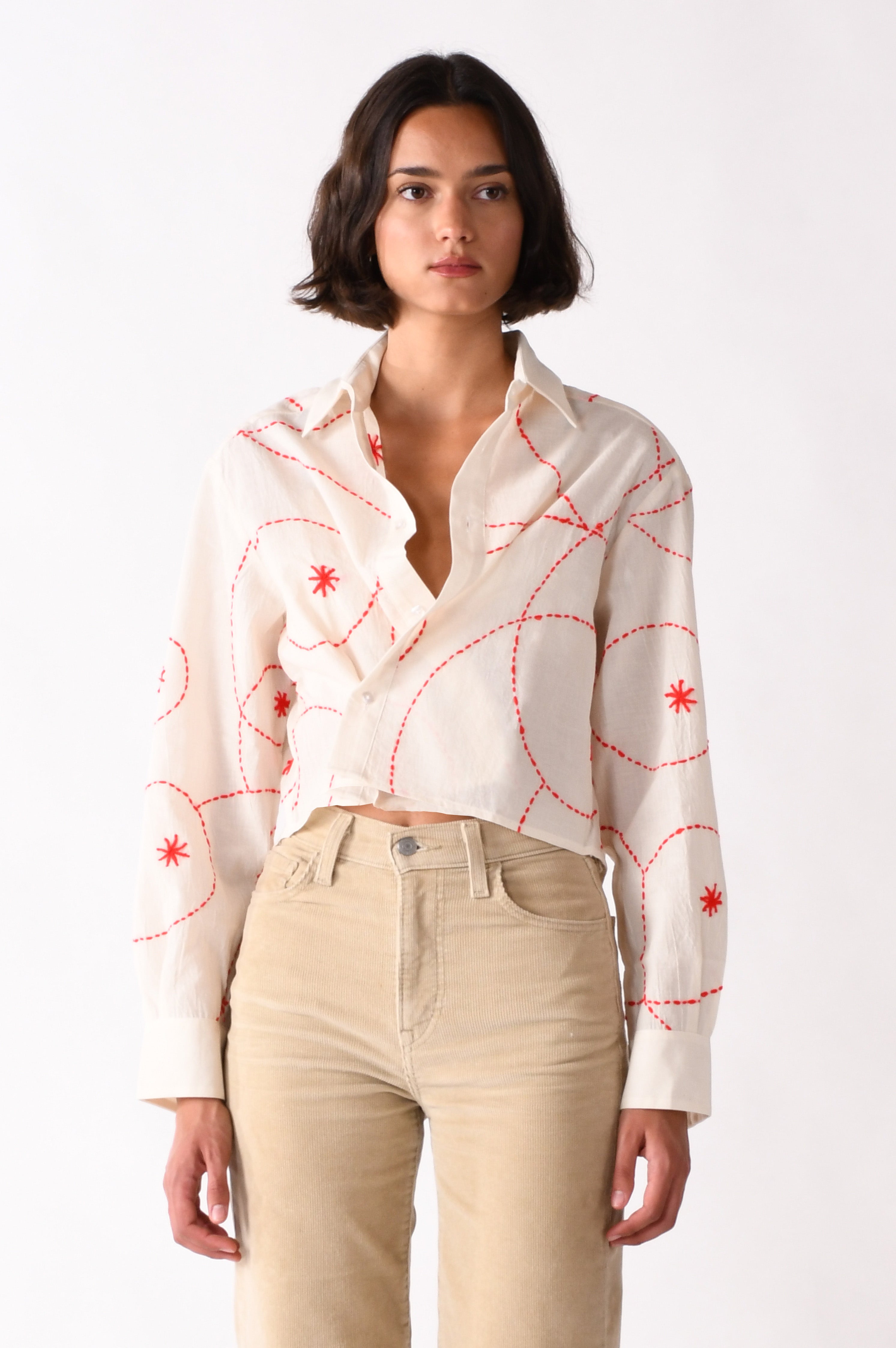 Unique hand-stitched floral design on 100% Natural Cotton.