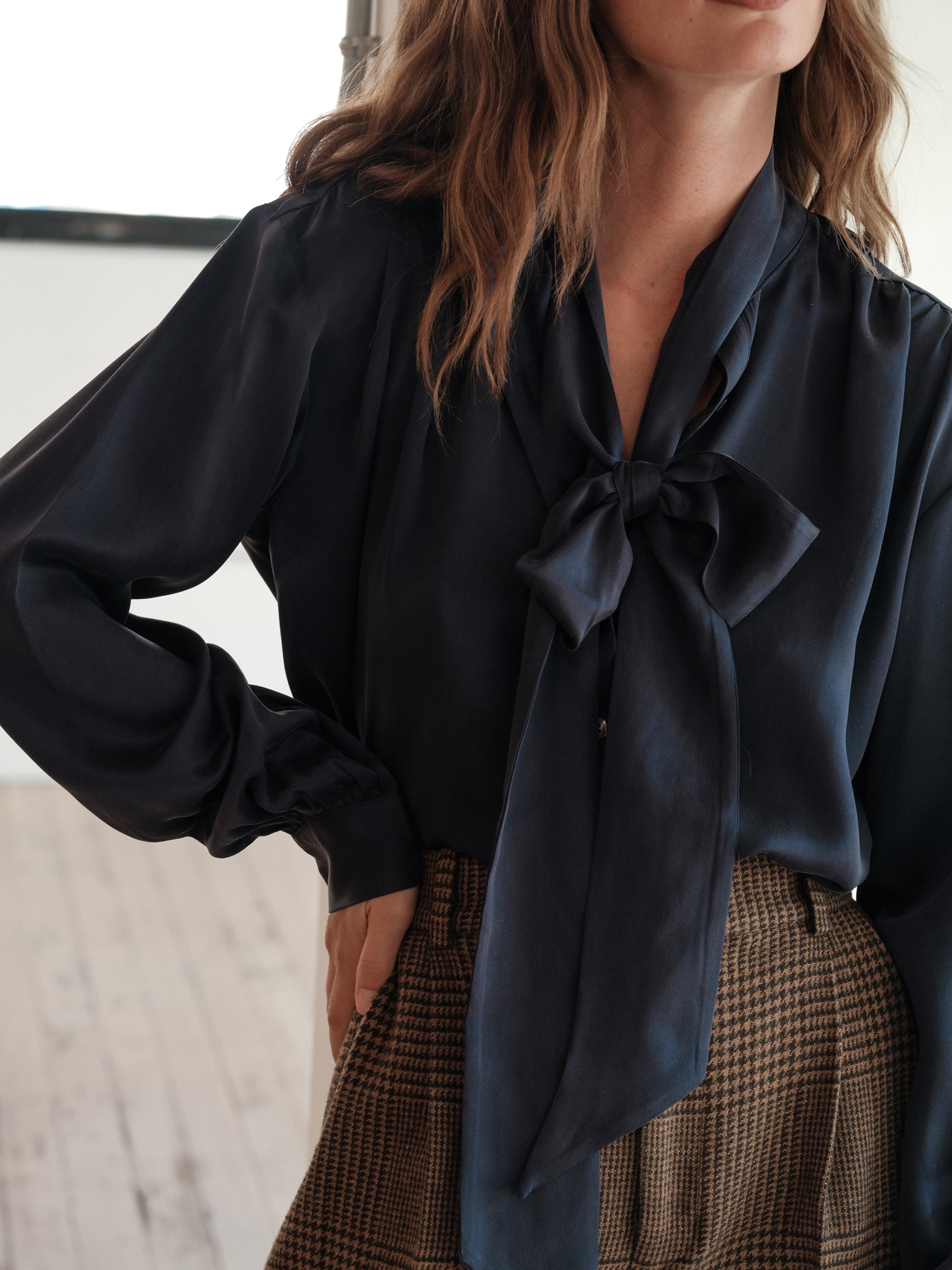 The TIE NECK Blouse, 100% Sueded Silk