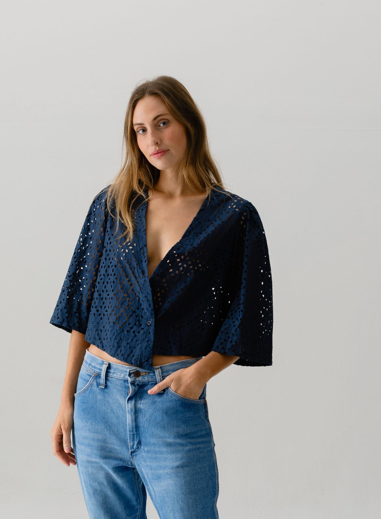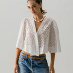 The LADY designed with a flattering face framing neckline and delicate bell-puff sleeve. Can be worn open, buttoned traditionally or lightly wrapped using the side buttons for a wrapped look.