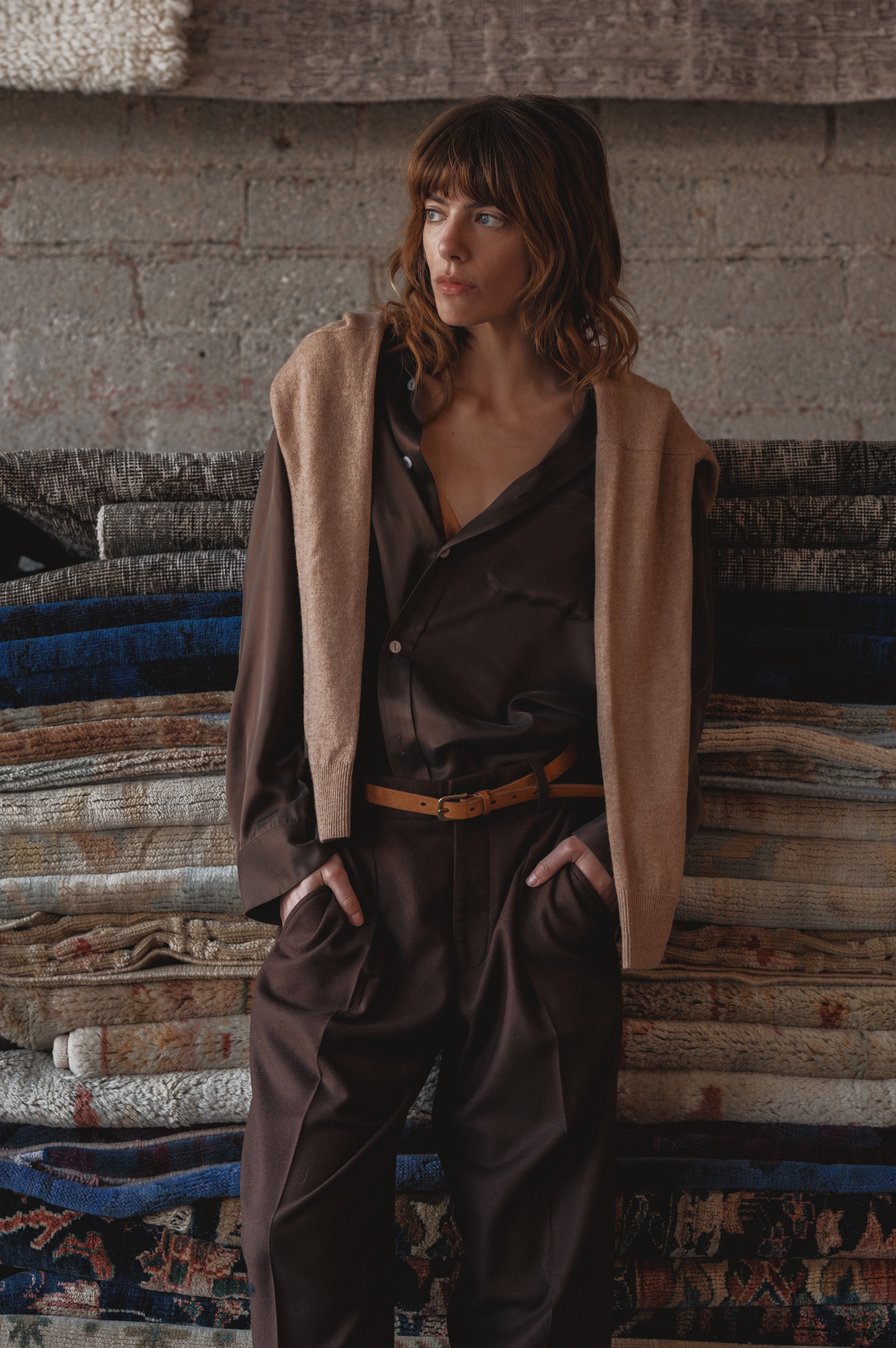 A relaxed fit, a single front pocket, and two knife pleats at the back yoke.