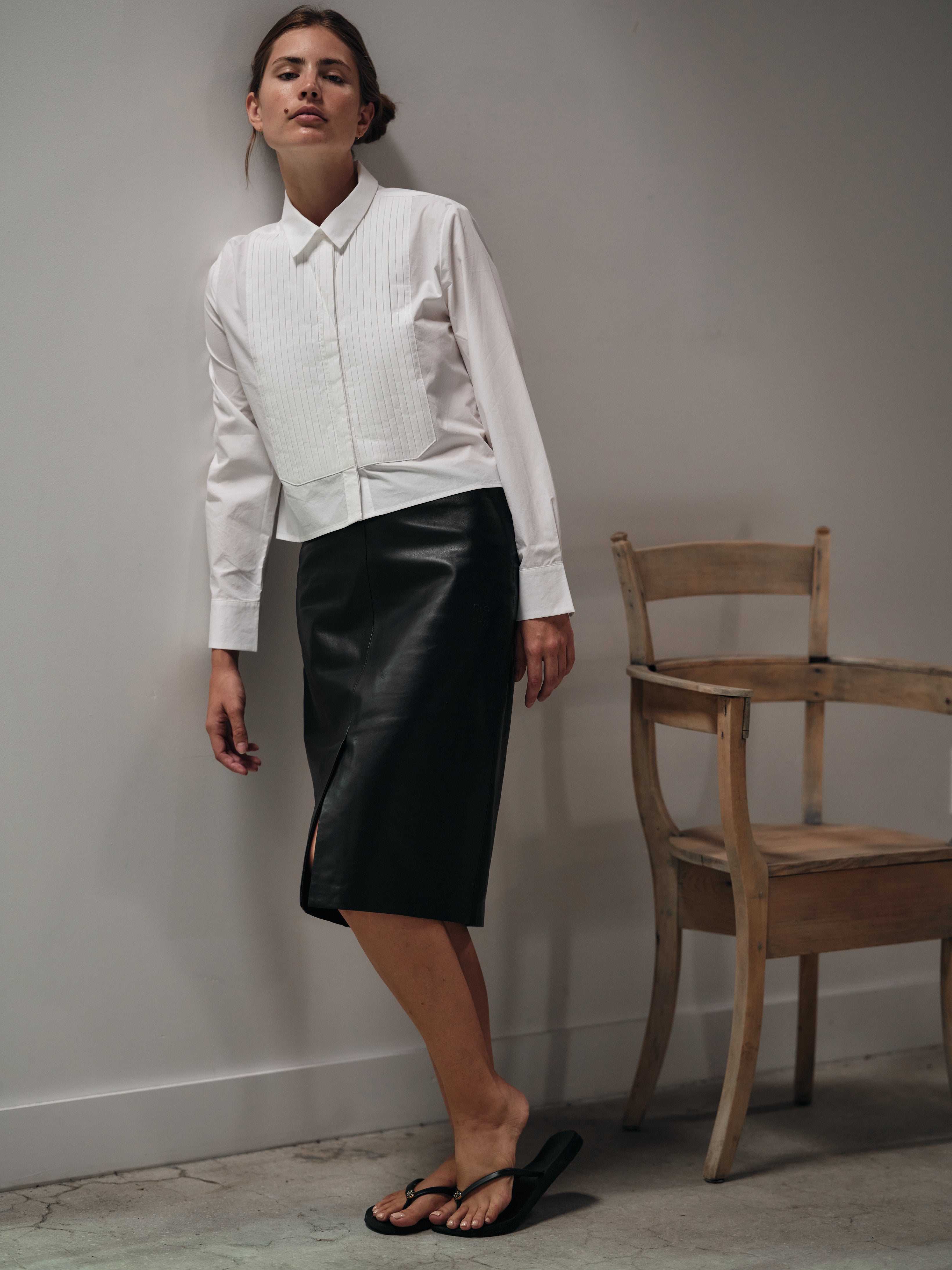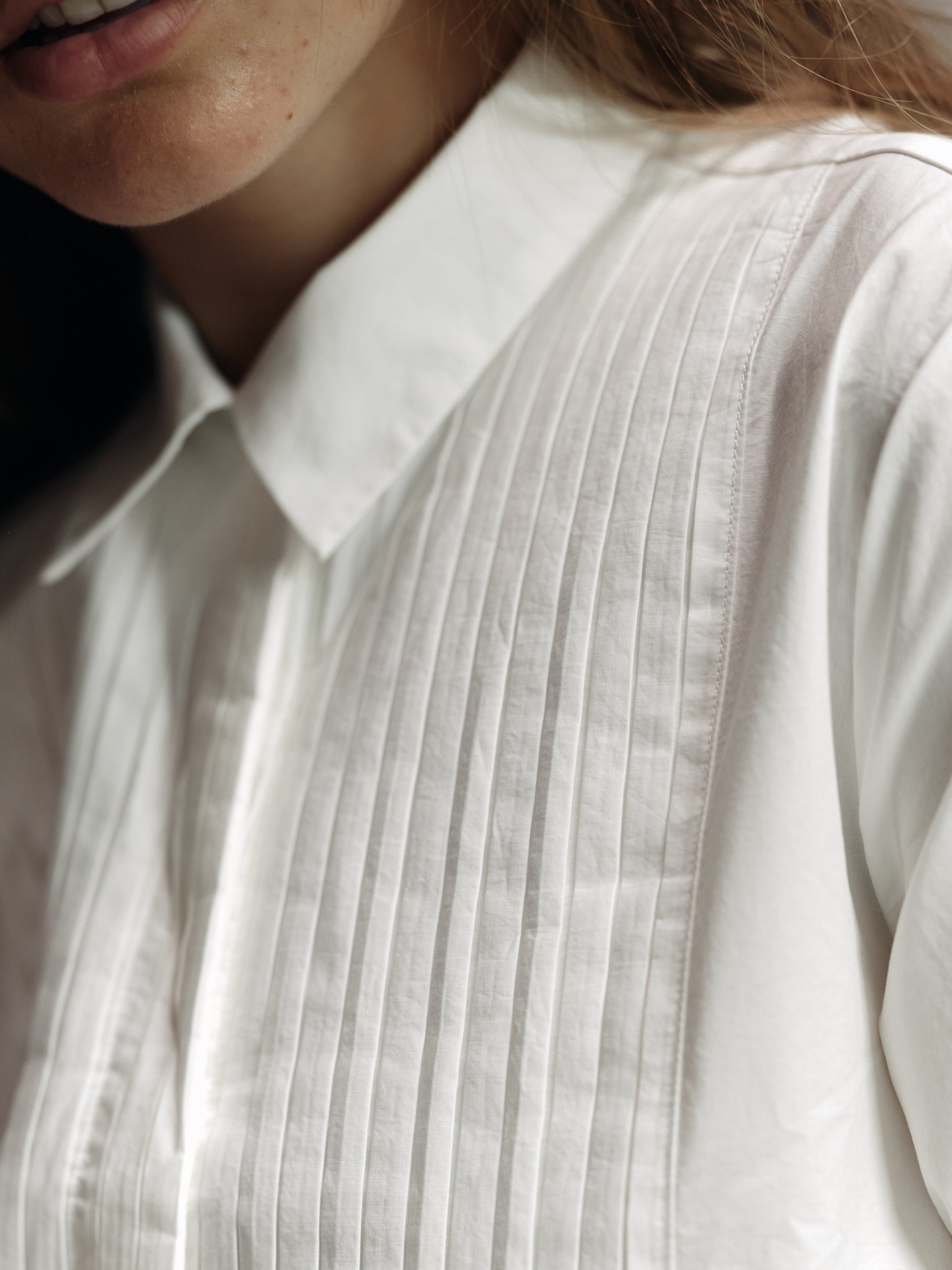 A slightly cropped version of a classic Tuxedo shirt ,complete with handmade pleated tuxedo bib detail.
