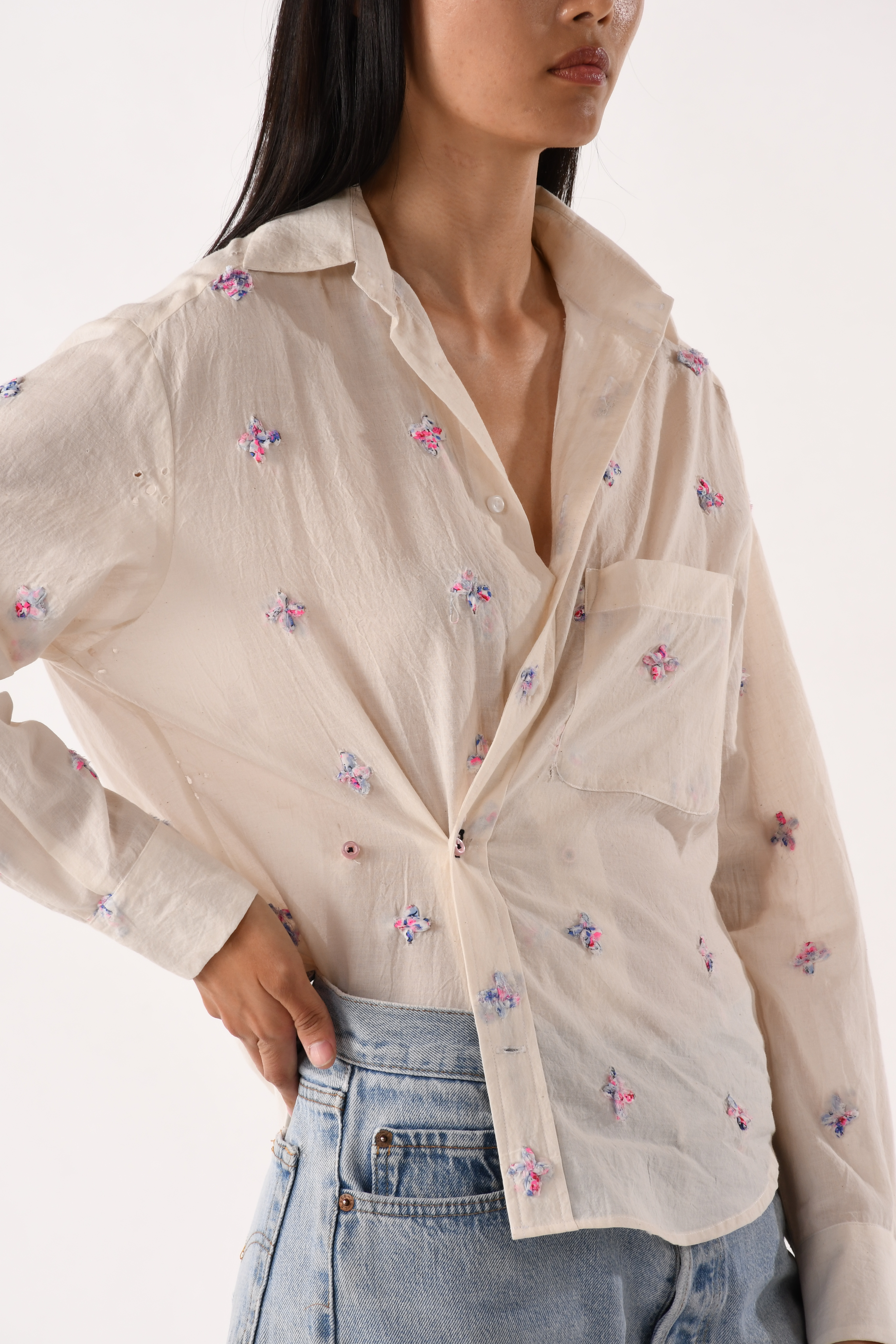 The DAILY Shirt, 100% Hand Embroidered Natural Cotton