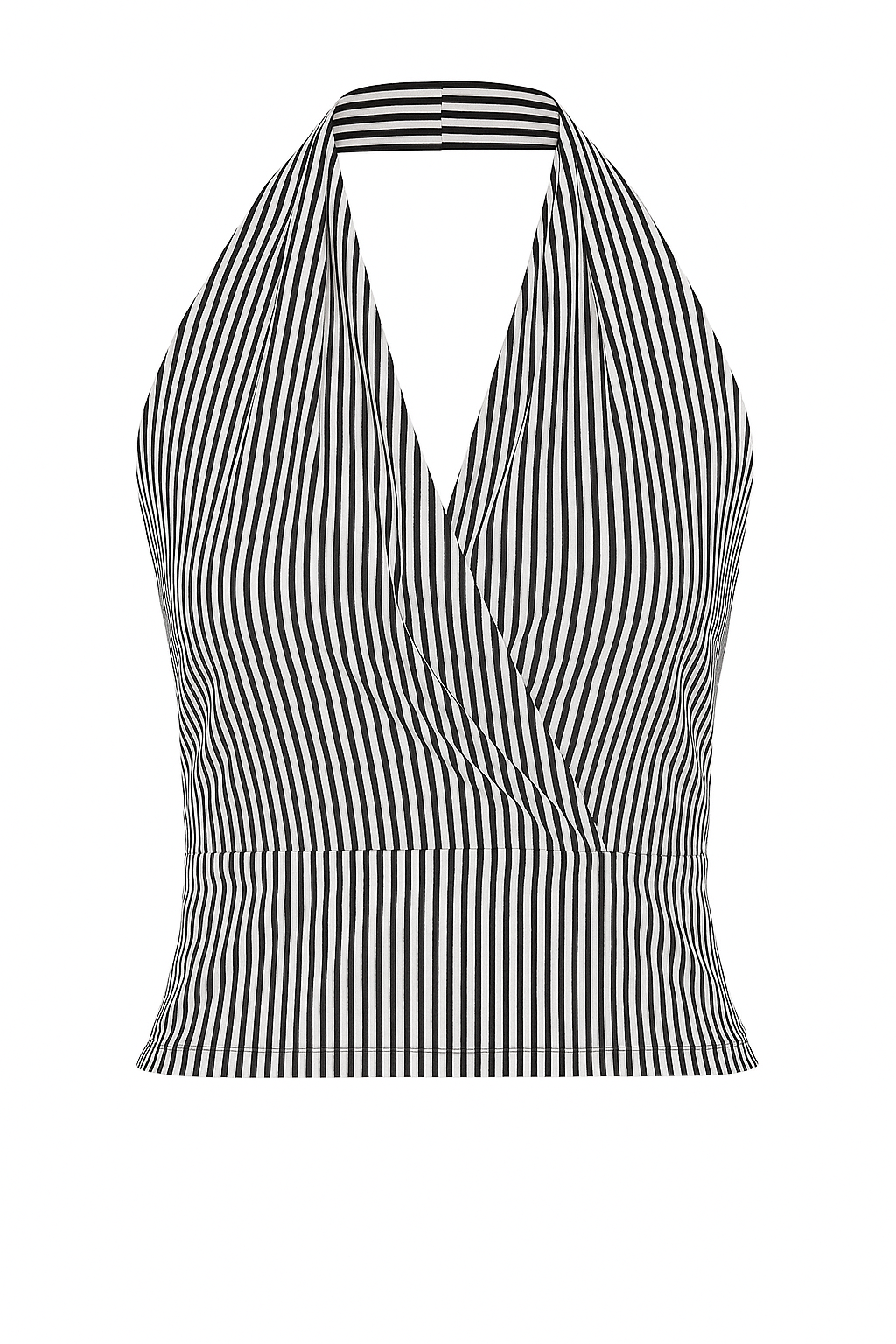 The Halter Top features an open back and ties with a 100% grosgrain ribbon at the back. Wear it alone or style it as a decorative underpinning.