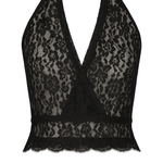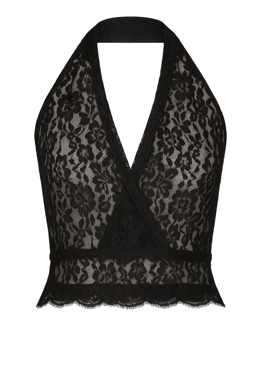 The Halter Top features an open back and ties with a 100% grosgrain ribbon at the back. Wear it alone or layer it to add a hint of lace.