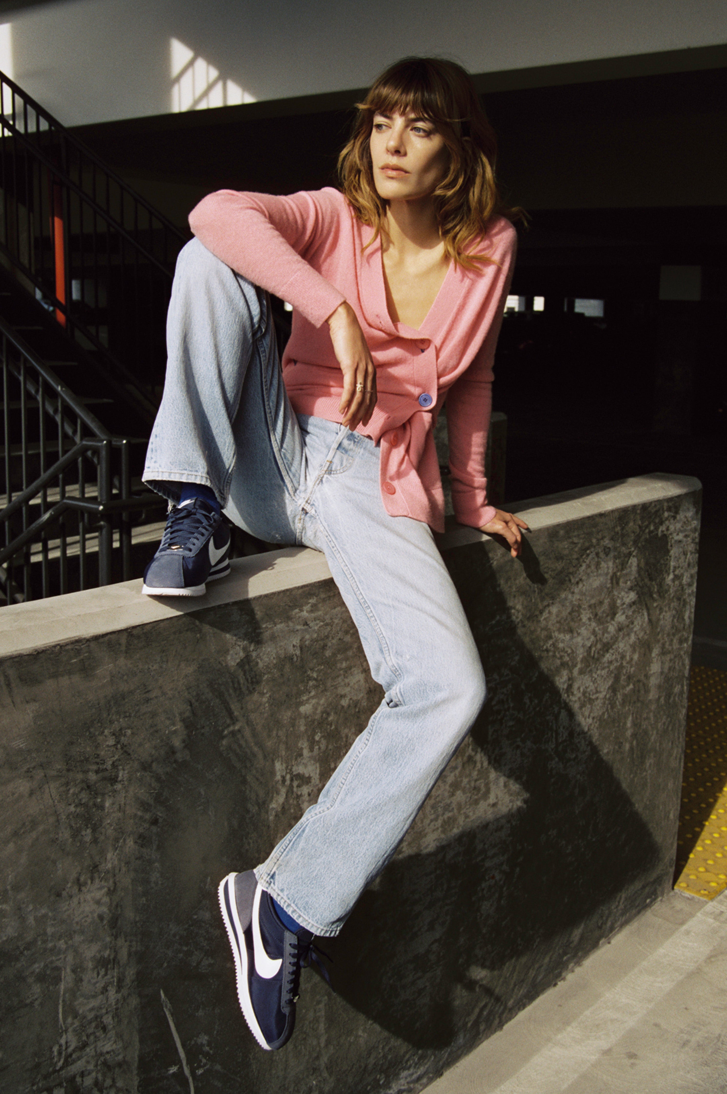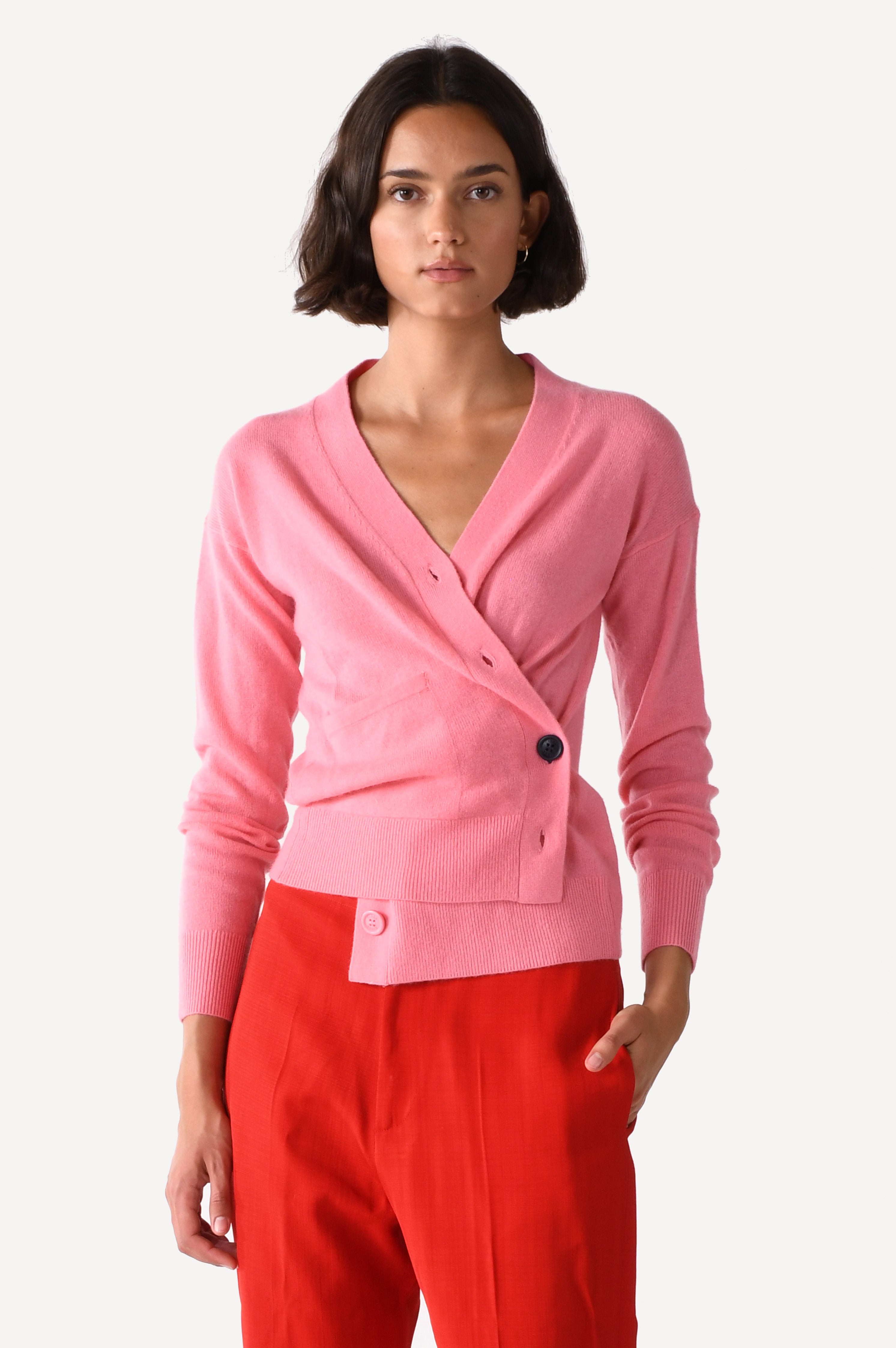 A wardrobe staple that can be worn regularly or wrapped. When wrapped it gently hugs the torso giving a flattering and form fitting look. Signature contrast pink buttons and buttonhole details serve as a wrapping template.
